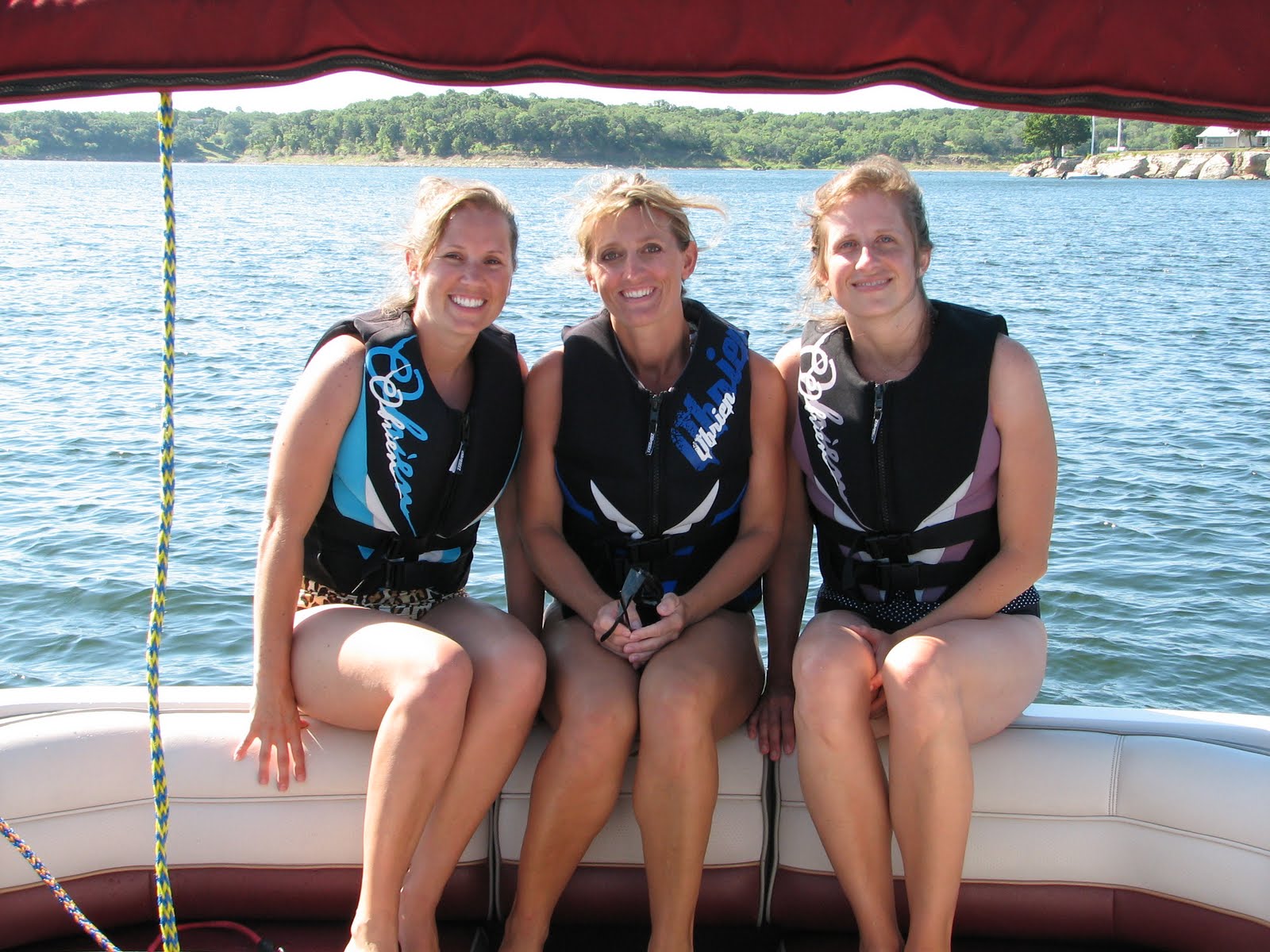 This summer is a little busy with a lot of traveling. SO - I wanted to make sure with all the comings and goings....Ricks birthday didn't get forgotten. We have some friends that like to celebrate birthdays, so we planned a fun day that was, "ALL ABOUT RICK." We did all of his favorites! The day started on the lake! Rick could absolutely LIVE on the lake in a boat. We headed to Texoma bright and early. Everyone took a shot at slalom skiing. This was my first time trying, and surprisingly I actually got up....I couldn't believe it! Then it was on to tubing! Me and the girls decided to all get on at the same time.